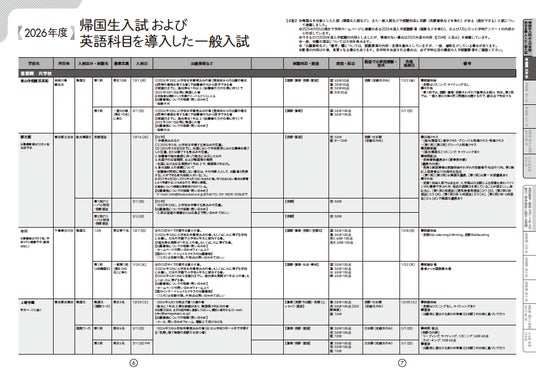 1. 2026年度入試、約100校の最新データ首都圏を中心に98校を対象とし、帰国生枠や英語科目導入の有無を基準に選定。入試方式、試験科目、出願資格、面接言語などを一覧化。英検・CEFR基準、得点保証の有無なども網羅。