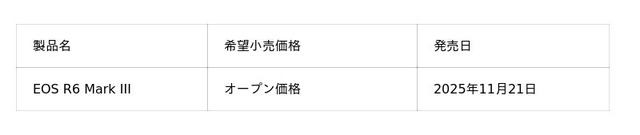 “EOS R6 Mark III”は、「EOS R6 Mark II」(2022年12月発売)から画素数が向上した有効画素数最大約3250万画素(※1)フルサイズCMOSセンサーによる高画質や、優れたドライブ性能・AF性能を発揮するフルサイズミラーレスカメラです。高い静止画撮影性能に加え、動画撮影においても、オーバーサンプリングによる4K動画記録や7Kオープンゲート記録(※2)など、充実した機能を搭載しており、静止画・動画それぞれの撮影シーンにおいて使いやすさを追求しています。