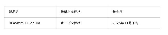 ※ 2025年11月6日時点で発売済みの開放F値1.2の「RF/EFレンズシリーズ」において。
