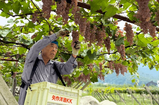 原料のポマースは、山梨県笛吹市で100年以上にわたりぶどう栽培を続けるワイナリー「矢作洋酒株式会社」 のものを使用しています。矢作洋酒は、1914年(大正3年)に創業した老舗ワイナリーで、ぶどうの生産から醸造まで一貫して手作業で行なっています。低農薬栽培にこだわって育てられた甲州ぶどうの恵みを活かしたいと考え、今回、「山梨県ジン」のキーボタニカルに採用しました。白ワインの仕込み後に出るポマースを受け継ぎ、クラフトジンに生まれ変わらせることで、山梨のテロワールを表現しました。
