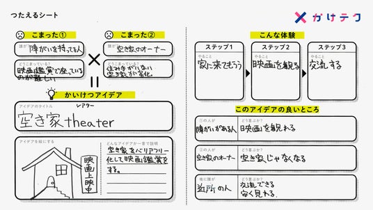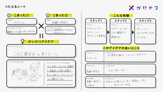 「かけテク」は、社会にある2つの困りごとをかけ合わせて、新しい解決策を生み出すという、広告会社ならではの発想法をベースにした探究型学習プログラムです。