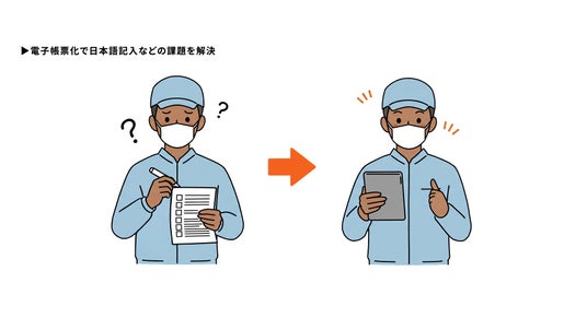 ・効果:手書き記録の読み取り困難を解消、外国人スタッフでも帳票を担当可能に