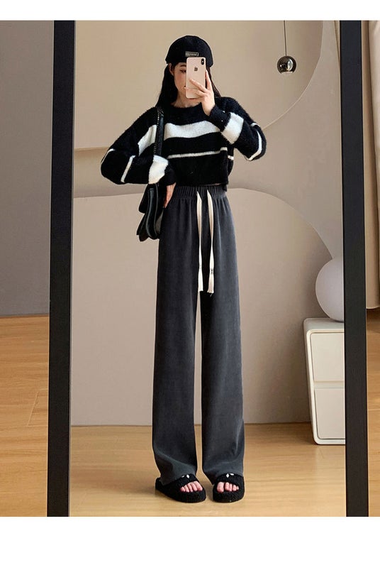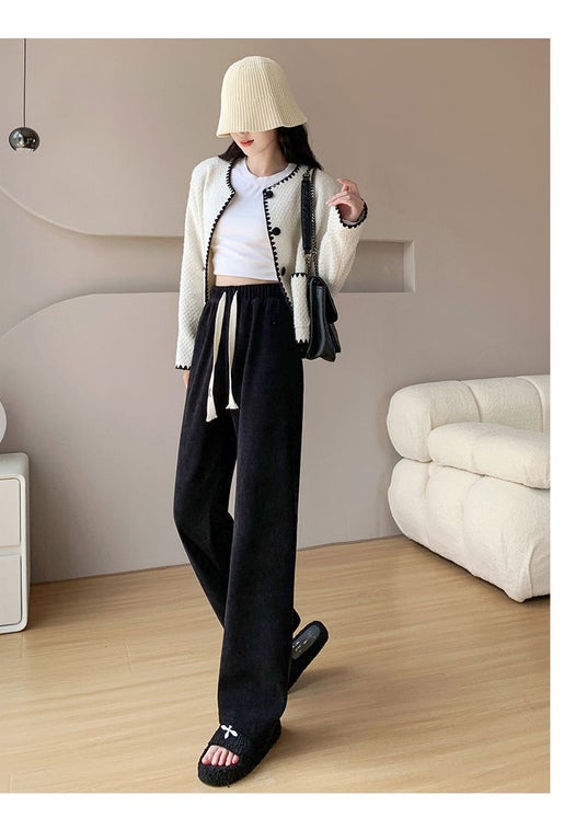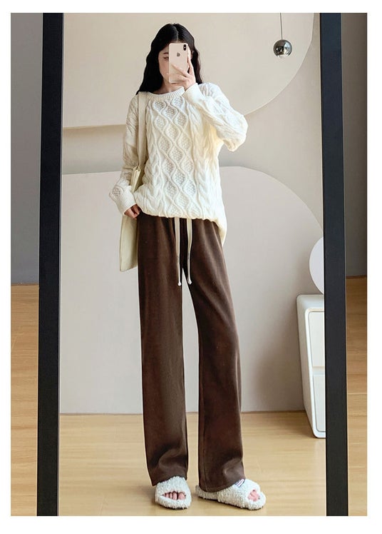 穿くだけで脚を細く長く見せ、すっきりとした印象を与えながら足元の抜け感を演出します部屋着