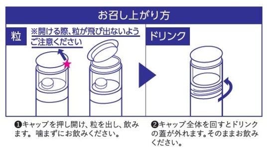 粒とドリンクを一体型の容器におさめた、1日1本と1粒(目安)に手軽に続けやすい形状です。