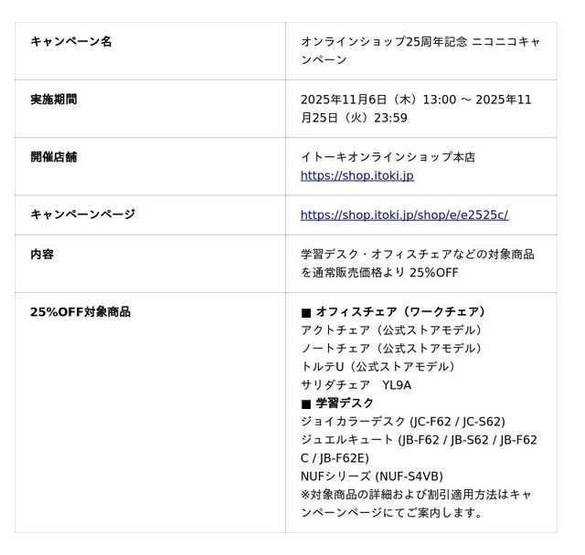 キャンペーンページ:https://shop.itoki.jp/shop/e/e2525c/