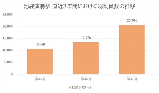 昨年に比べ、参加劇場は2会場、参加団体は7団体増加しました。総動員数は7,228人増加し、20,704名となりました。