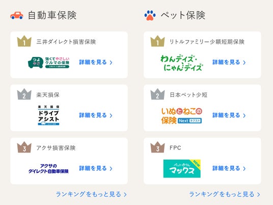自動車保険・ペット保険ランキング