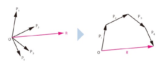 示力図とは、複数の力をつなぎ、力の始点と終点を結んで合力を示した図のことです。