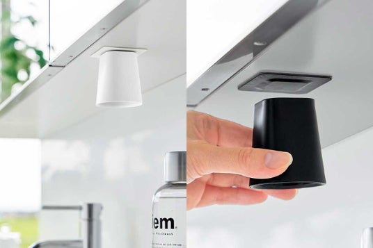 洗面台の戸棚下などに簡単に取り付けられ、タンブラーを逆さに収納できるため、水切れが良く、清潔に保管できます。