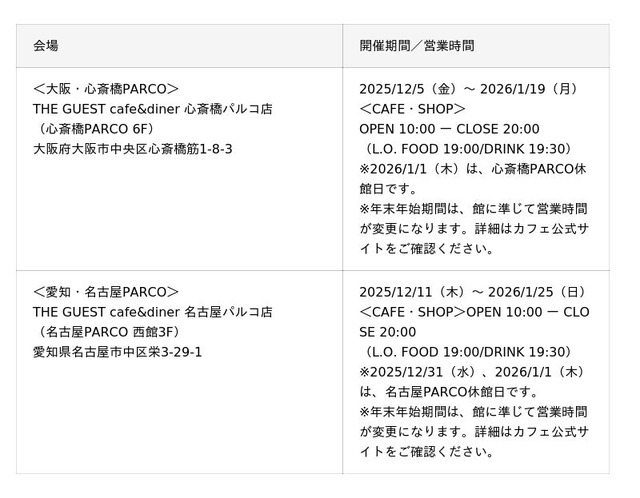 心斎橋会場は、12/6(土)・12/7(日)、名古屋会場は、 12/13(土)・12/14(日)を予定しております。