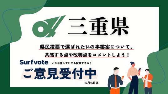 「三重県の地域や暮らしに関するアイデアを県民から募集します!」※本意見募集自体は、10月16日に終了しました