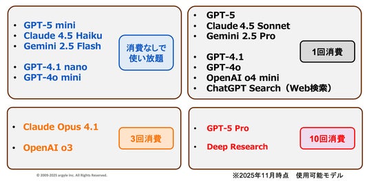 「アーガイル AIアシスタント」にて定額利用可能可能な最新LLM一覧
