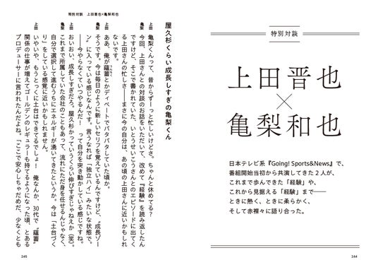文庫版では、日本テレビ系「Going! Sports&News」で、番組開始当初から共演してきた亀梨和也氏と上田さんによる特別対談も収録した豪華な内容となっております。