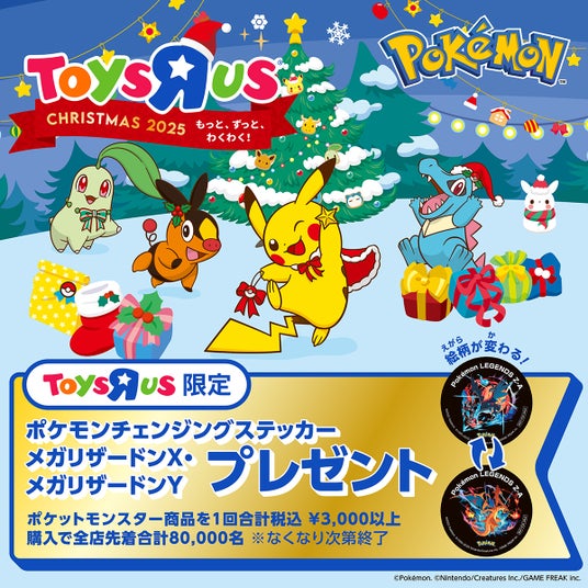 『Pokemon LEGENDS Z-A』の10月16日(木)の発売を記念して、全国のトイザらス・ベビーザらス店舗で「ポケモンクリスマスキャンペーン in トイザらス」を2025年11月12日(水)より開催いたします。
