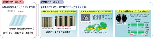 ※3 次世代光学素子とは・・・位相差を任意に制御できる技術を生かして、従来にはない配向パターンを実現します。この技術は将来的に、撮像やセンサ、光通信などの分野で応用が期待されています。