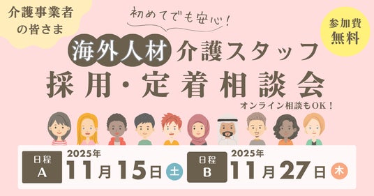 相談会名:『初めてでも安心!海外人材介護スタッフ採用・定着相談会』日時:2025年11月15日(土) 13:00~17:00