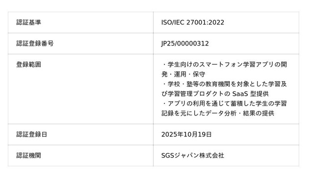 Hanjiは、生成AI技術を活用した学習アプリ、AIチューター「Knock」を、主に中高生に提供しています。今回、利用者の学習データなどを取り扱う企業として強固なISMSを構築すること、また今後想定される利用者や利用シーンの広がりへの対応を目的に「ISO/IEC 27001:2022」認証の取得に至りました。この認証取得によって、Hanjiの情報管理体制が、国際規格に基づいて適切に運用されていることが第三者機関により認められました。