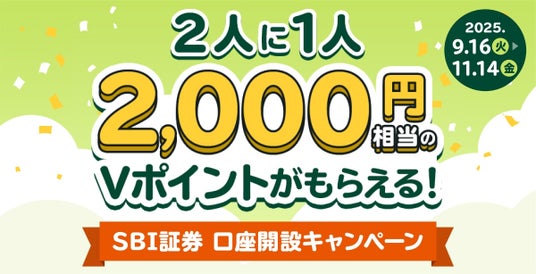 (2) SBI証券の口座開設で2人に1人、2,000円相当のVポイントが当たる!キャンペーン