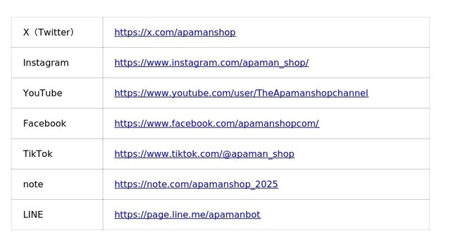 Tel: 0570-058-889 Mail: pr@apamanshop.co.jp
