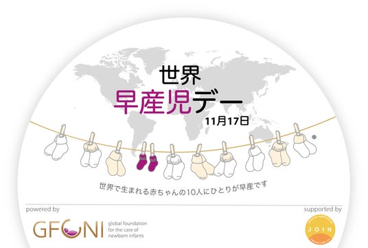 ■「世界早産児デー(World Prematurity Day)」とは11月17日の世界早産児デーは、ちいさく早く生まれた赤ちゃん、周産期医療を受けた赤ちゃんとご家族が抱える課題や負担に対する意識を高めるため、2008年にヨーロッパNICU家族会(EFCNI)(現国際NICU家族会(GFCNI))および提携している家族会によって制定された記念日です。