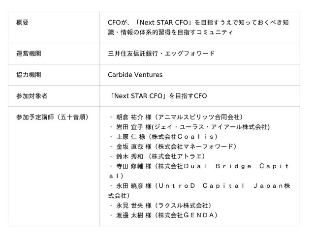 People Tech (テクノロジーによって人の可能性を拡げる) 事業を展開する株式会社アトラエ (本社:東京都港区、代表:新居佳英、東京証券取引所プライム市場:6194) は、三井住友信託銀行株式会社、エッグフォワード株式会社、Carbide Venturesが共同で運営する「CFO塾(Next STAR CFO Initiative)第2期」へ弊社取締役CFO 鈴木秀和が講師として参画することをお知らせします。