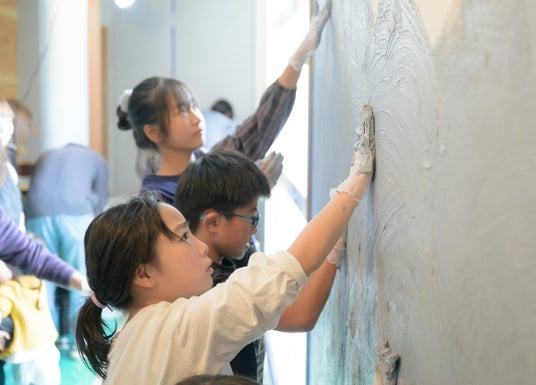 盛岡の子どもたちと一緒に行った店舗の壁塗りの様子