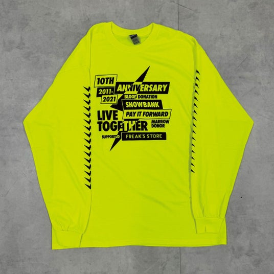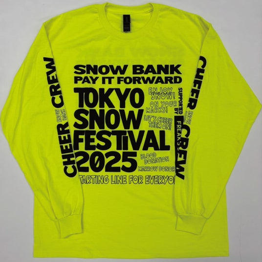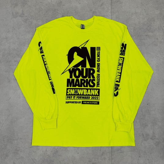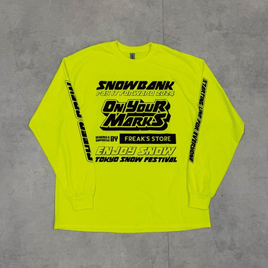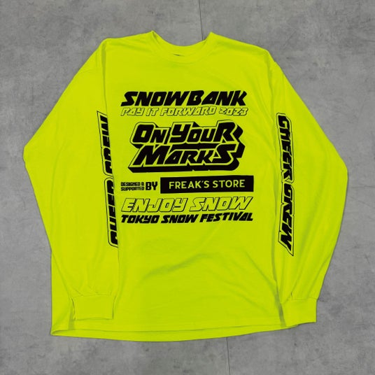 このロンTは2017年からスタートしました。FREAK‘S STOREの提案でボランティアさんのカッコいいユニフォームがあった方が良いのでは?という提案からスタートして今ではSNOWBANKのシンボルカラーになっています。今年の新作も楽しみです。