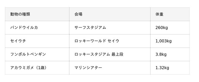 株式会社グランビスタ ホテル&リゾート(本社:東京都千代田区、代表取締役社長:荒井 幸雄)の基幹施設である鴨川シーワールド(千葉県鴨川市、館長:勝俣 浩)では、11月1日の「計量記念日」にちなみ、11月1日(土)にバンドウイルカ、セイウチ、フンボルトペンギン、アカウミガメなど4種の動物たちの公開体重測定を実施しました。
