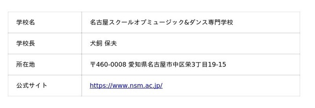 名古屋スクールオブミュージック&ダンス専門学校 について