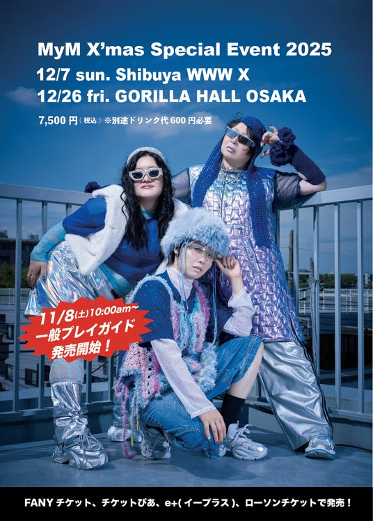 12月7日(日) 渋谷WWW X、12月26日(金) GORILLA HALL OSAKAにて開催することが決定しているMyMのクリスマスイベント『MyM X’mas Special Event 2025』の一般発売が、11月8日(土) 午前10時より開始する。