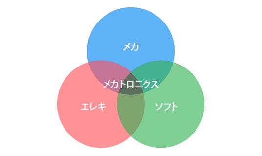 一般的にメカトロニクスといえば、機械工学(メカ)、電気・電子工学(エレキ)、情報工学や制御工学(ソフト)を組み合わせて、与えられた目的(動作)を自動で実現する技術を指すということは、共通の認識といってよいでしょう(図1)。