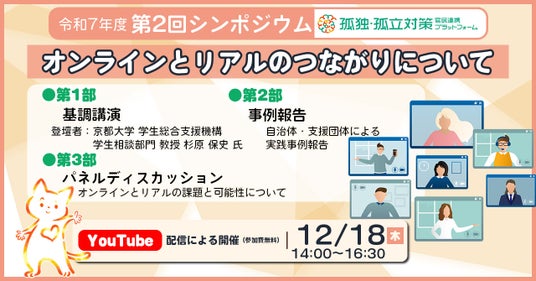本シンポジウムでは、「つながりの場」に焦点を当て、オンラインとリアルの双方が持つ可能性や課題、そして両者がどのように補完しあえるのかについて検討します。冒頭では学識経験者による基調講演を通じてテーマの全体像を提示し、その後、相談支援と居場所支援を組み合わせながら実践を行う NPO や地方自治体の事例報告を通じて、多様なつながりの形やそれらの連携のあり方について学びを深めます。
