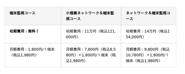 「ネットワーク&端末監視コース(50)」は、端末50台までの規模、「ネットワーク&端末監視コース(100)」は端末100台までの規模でご利用いただけます。従来のコースではカバーしきれなかった中規模オフィスや大規模拠点のお客様向けとして提供を開始し、様々な規模の拠点に導入できるようになりました。