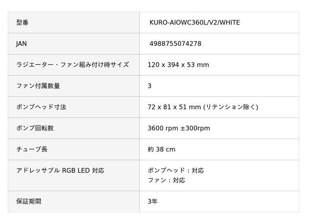 PCパーツブランド「玄人志向」は、簡易水冷CPUクーラー「KURO-AIOWC/V2シリーズ」に、新たにホワイトカラーモデル『KURO-AIOWC360L/V2/WHITE』『KURO-AIOWC240L/V2/WHITE』を発売いたします。