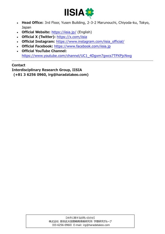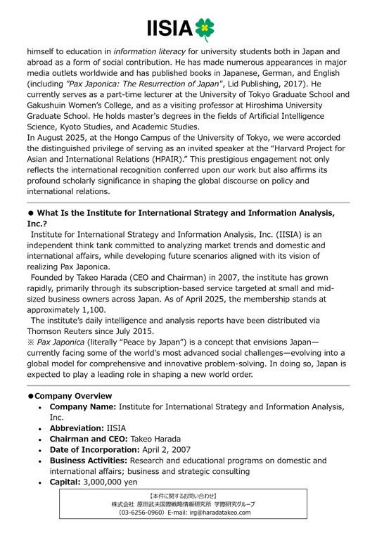 英語表記:Institute for International Strategy and Information Analysis, Inc.(略称:IISIA)