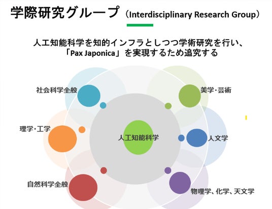 弊研究所では2023年4月に「学際研究グループ(Interdisciplinary Research Group)」を正式に立ち上げ、博士課程修了ないし博士号取得者である国内外の研究者たちにより「パックス・ジャポニカ(Pax Japonica)」の実現に向け様々な角度からの研究を実施しています。人工知能科学を知的インフラとしつつ学術研究を行い「Pax Japonica」を実現に向けて特定の科学分野に偏ることなく学術的な目線で研究しています。