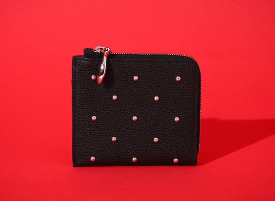 小さくても妥協しない。コンパクトで機能的なL字ジップウォレットが、スタッズをまとって華やかに。ファスナーラインに沿って配されたスタッズが、手元を凛と見せます。ライトシュリンクレザーの柔らかさと、精巧な金具づかいが呼応し、使うたびに高揚感を与える一品。