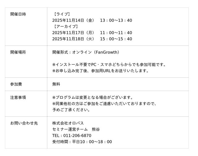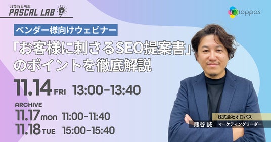 SEOツール「パスカル」の開発・提供を行う株式会社オロパスは、2025年11月14日(金)に、SEOツール「パスカル」を活用し、各業界のデジタル集客課題を解決するウェビナーシリーズ 「PASCAL LAB」 をスタートいたします。