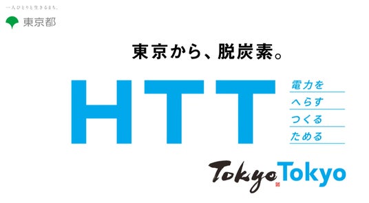 東京都では、電力を「Ⓗへらす・Ⓣつくる・Ⓣためる」=「HTT」をキーワードに、脱炭素化と電力確保の取組を進めています。(取組例:Ⓗへらす:「エアコンのフィルターをこまめに掃除する」 Ⓣつくる・Ⓣためる:「自宅に太陽光発電と蓄電池を導入する」など) 詳細は公式サイトをご覧ください。