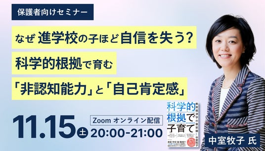 お子さまの「中だるみ」や自信の低下に、"精神論"ではなく「科学的根拠」で向き合ってみませんか?本セミナーでは、教育経済学の第一人者・中室牧子教授が、お子さまの自己肯定感を育むヒントを解説します。