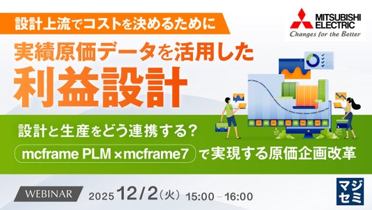 本セミナーでは、製造業向け基幹業務ソリューションであるmcframeシリーズの中でも、製品開発プロセスを支援する「mcframe PLM」と、実績原価管理や生産管理を担う中核システムである「mcframe 7」を活用し、設計データと実績原価データを連携させて“利益を見通した製品設計=利益設計”をどのように実現するかをご紹介します。