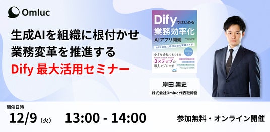株式会社Omlucでは、本書の出版を記念して【生成AIを組織に根付かせ、業務変革を推進する~Dify最大活用セミナー】セミナーを12月9日(火)に開催します。