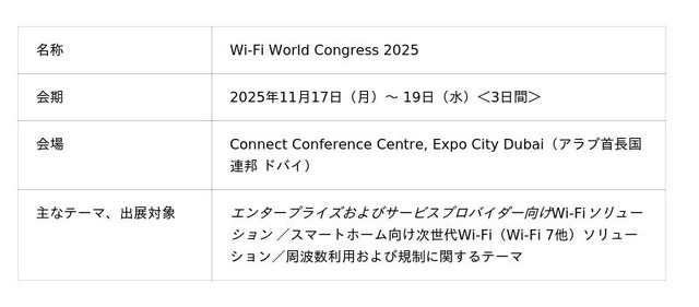 このイベントは、Wi-Fi業界の世界のリーダー、サービスプロバイダーやアナリストが一堂に会し、次世代のWi-Fi技術の動向が集結する重要な場となります。