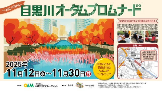 一般社団法人大崎エリアマネージメントでは、品川区の都市ブランディング「しあわせ多彩区」が目指す多様な人々が共生するまちづくりの推進に合わせ、秋の新たなイベントとして「目黒川オータムプロムナード」を開催いたします。目黒川沿いを色とりどりのリボンで装飾するとともに、外出が困難な方も参加できる分身ロボット「OriHime(オリヒメ)」による遠隔ガイドや、リボン装飾を水上から楽しめるEボート体験や、舟旅通勤の船上からも楽しめるようにするなど、誰もが参加できる企画を提供します。