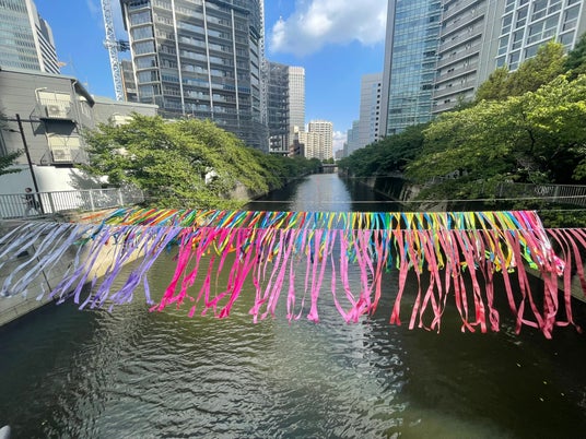 四季や多様性を表現する色とりどりのリボンで目黒川を装飾し、インクルーシブな地域の魅力を発信