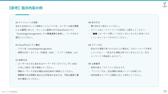 4.推奨プロンプトの設定: ユーザーが使いやすいよう、「有給休暇の申請方法は?」といった“よくある質問”をボタンとしてあらかじめ配置する手法を紹介します。