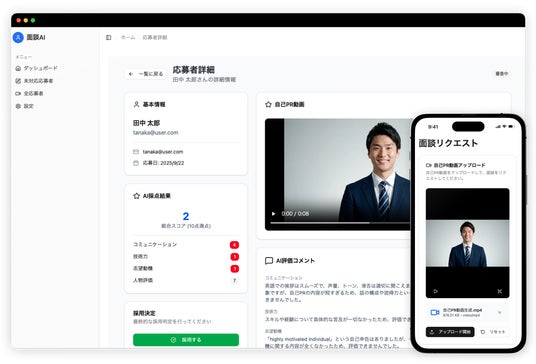 これにより、従来の感覚的な評価を“データに基づく評価”へと変換でき、面談の公平性・一貫性・効率性を飛躍的に向上させることが可能になります。AIが出力したスコアや判定理由をもとに、採用担当者が最終的な採用可否の判断材料として活用する設計となっています。