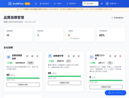 - PDCAに基づく改善レポートの自動出力 → 監査報告書・管理レビュー議事録にも転用可能