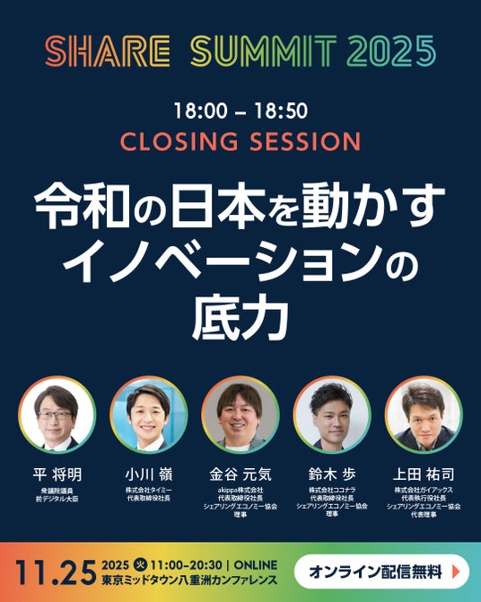 ※ 取材をご希望のメディア関係者様は、件名に 「11/25 シェアサミット取材の件」 とご記載のうえ、上記メールアドレスまでご連絡ください。確認後、メディアパスを発行いたします。