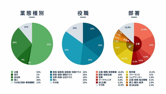 役職別では、経営層・部長クラスが約36%、さらに主幹・係長・主任クラスが16% と、意思決定層および実務の中核を担う層が中心です。